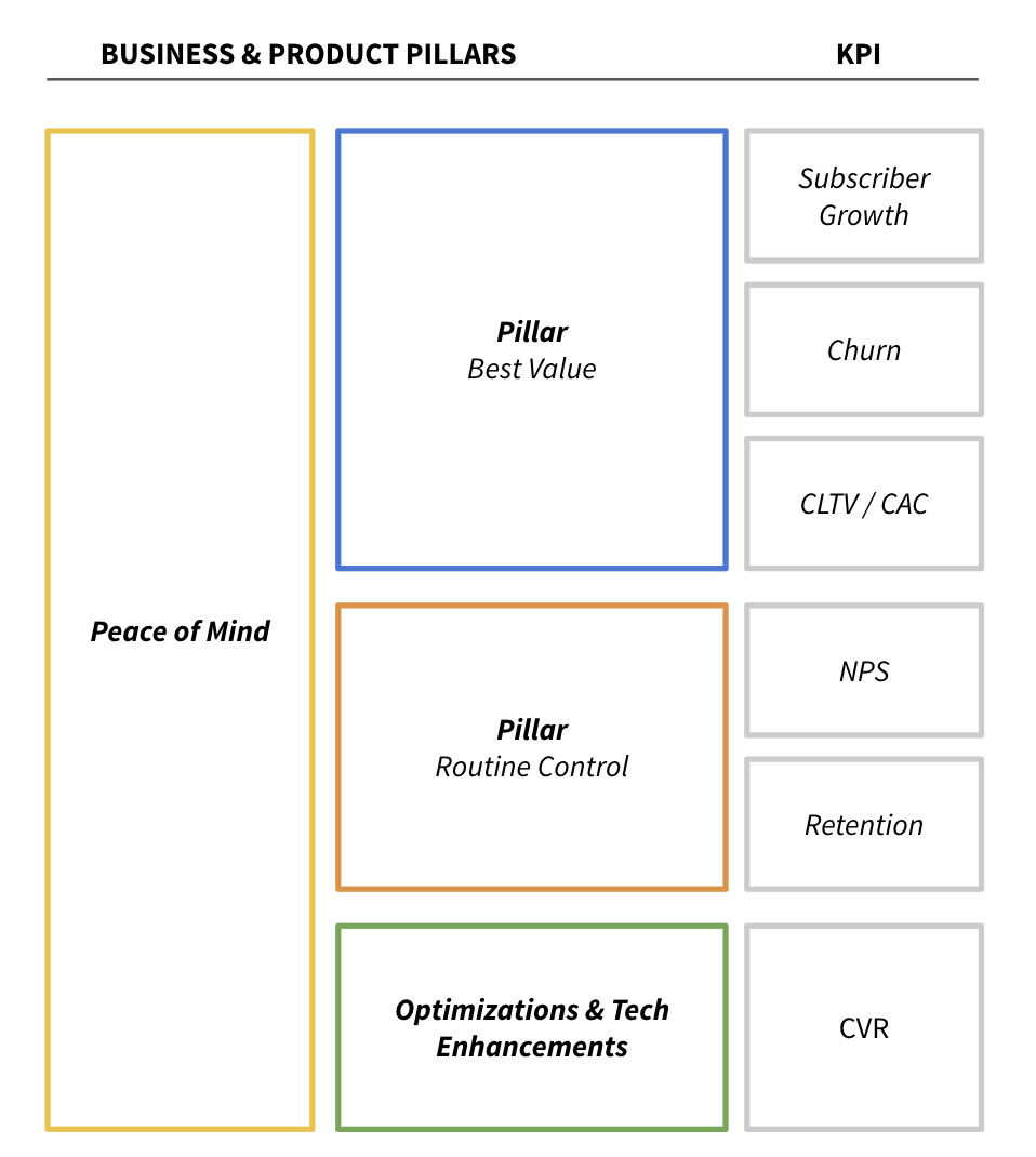 North Star Metrics: Subscriber Growth, CLTV / CAC, Churn
