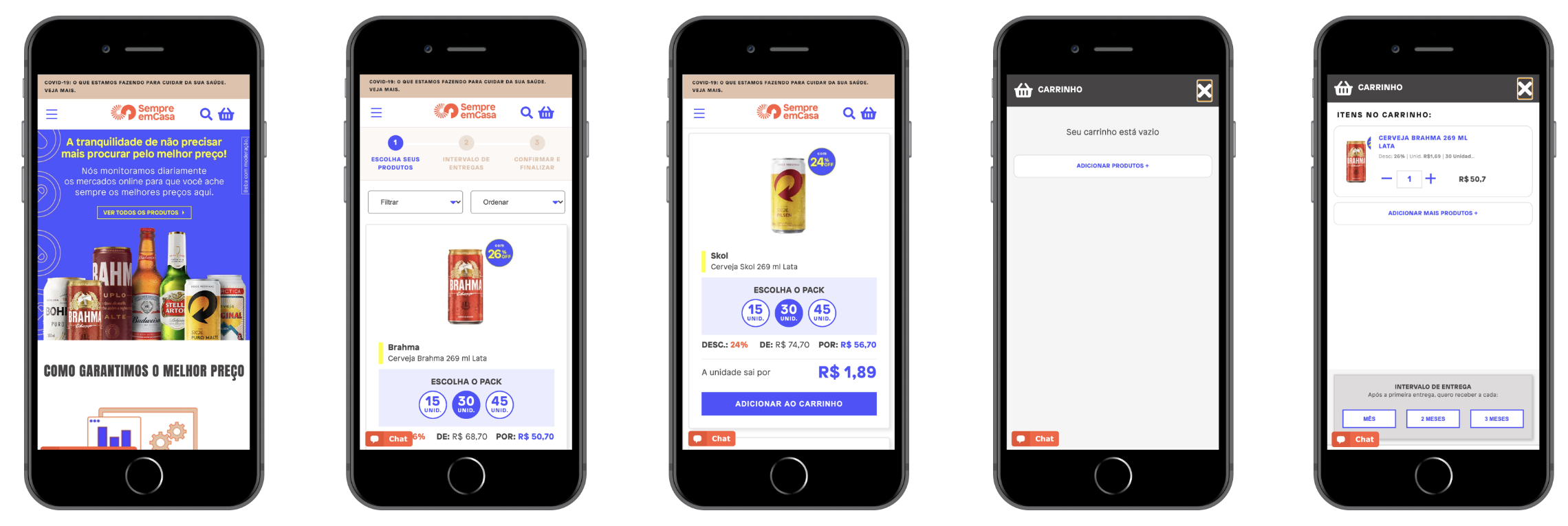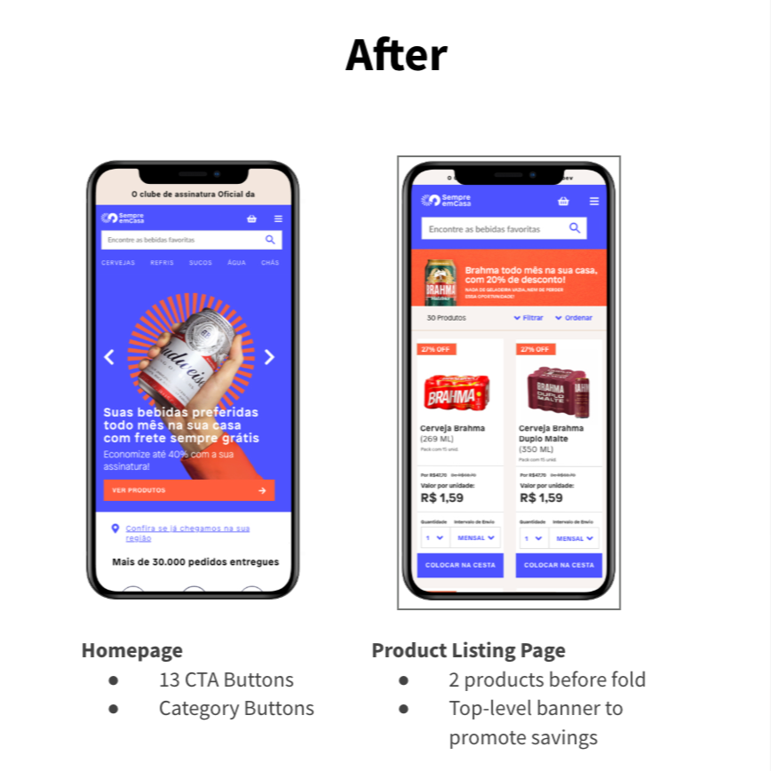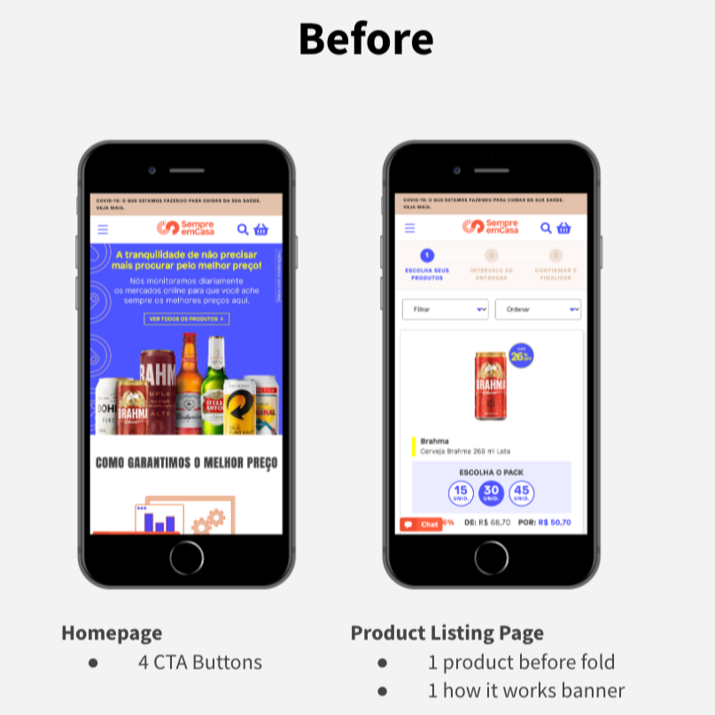 In 2020, the surge in on-demand delivery during COVID drove a significant increase in site traffic, creating an opportunity to rethink and improve the overall experience. We took this moment to execute a comprehensive rebuild of Sempre em Casa to create a more scalable and cohesive platform spanning backend, frontend, product design, and overall UX.