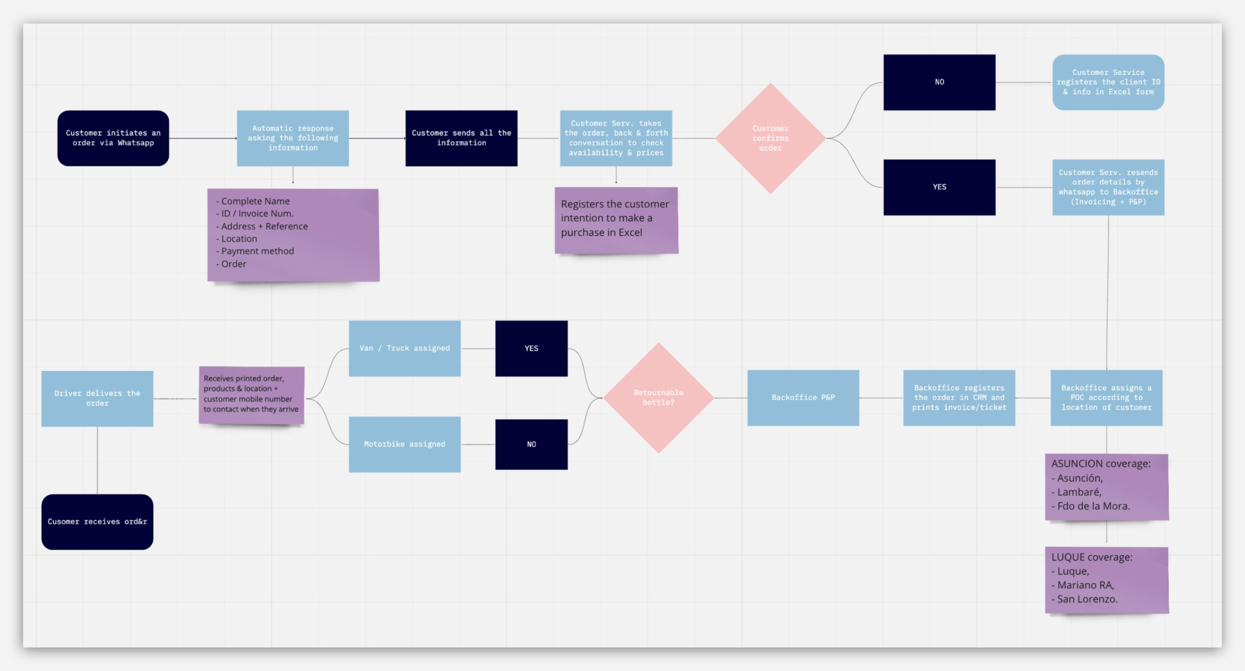 In order to best serve Estación’s users through the mobile and desktop experience, we had to understand the operations behind delivering beverages to them. We partnered with Estación’s local operations team to confirm this operational process.