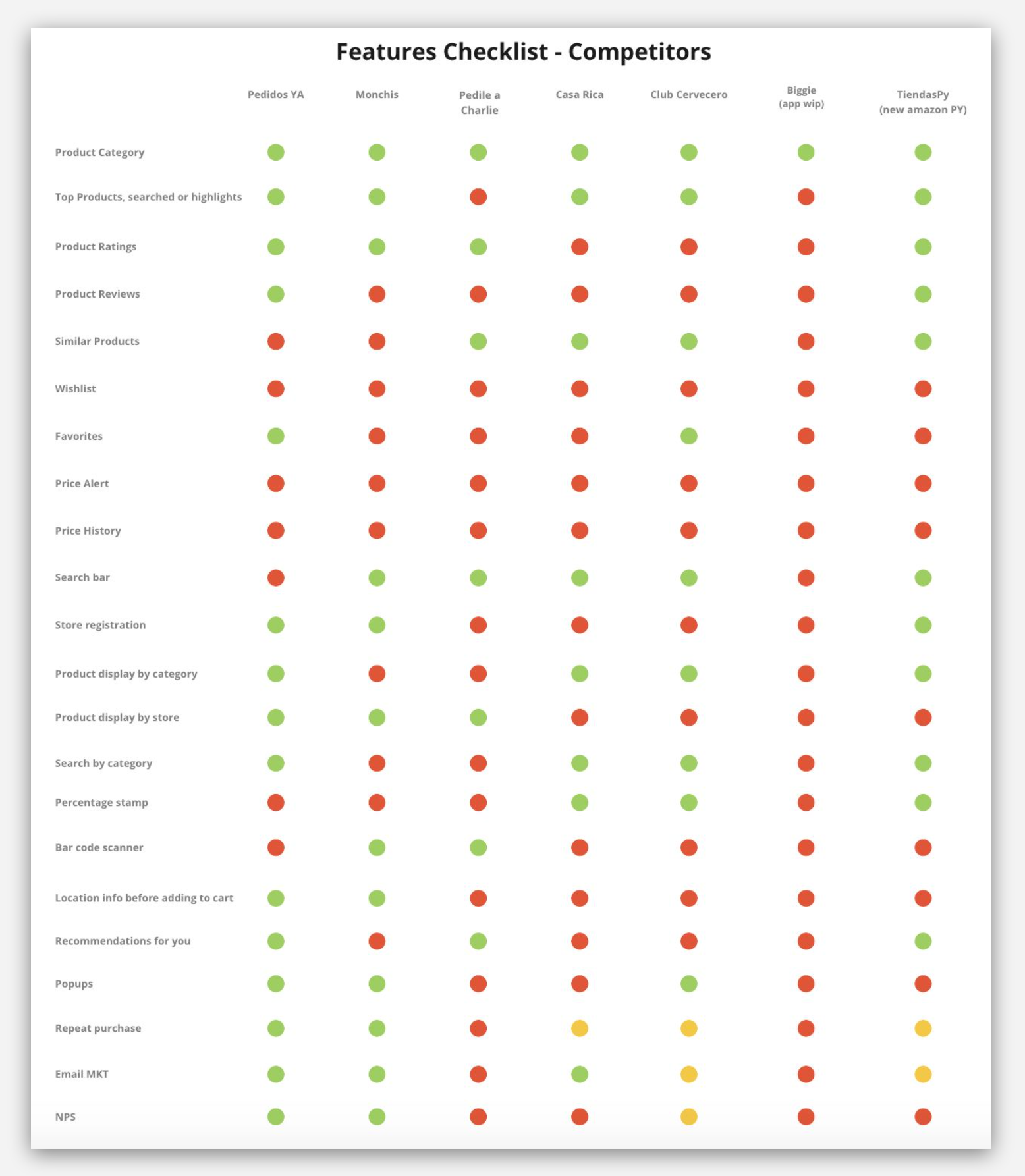 By mapping out the features for each courier service, we were able to compare and contrast them to find commonalities and market differentiating opportunities. This helped inform which features are critical to include for Estación’s target market.
